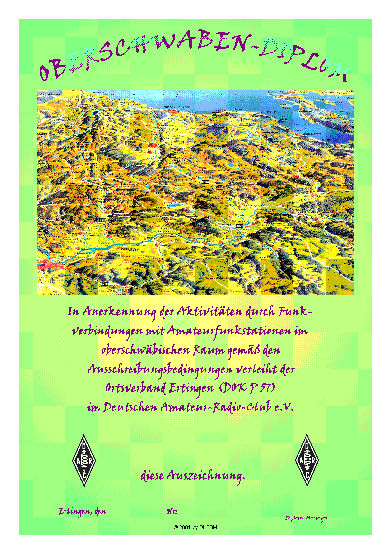 (Stand September 2001, von DH8BM. Das Diplom ist 210 x 297mm groß, es ist vierfarbig